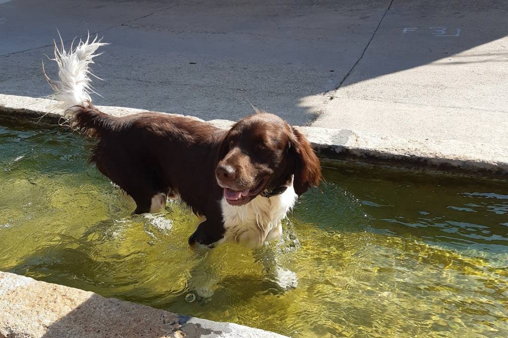 Un Grand Épagneul de Münster dans l'eau