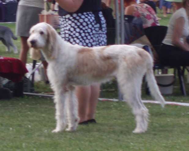 Un groupe de Grands Griffons Vendéens entraînés à marcher au pas et en laisse