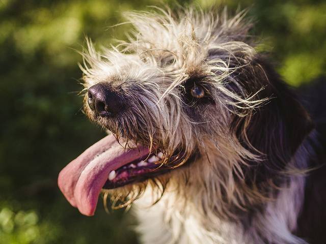 Des chiots Griffon Bleu de Gascogne jouant entre eux et avec leur mère