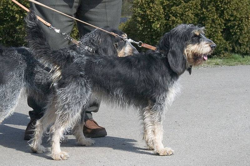 Des chiots Griffon Bleu de Gascogne jouant entre eux et avec leur mère