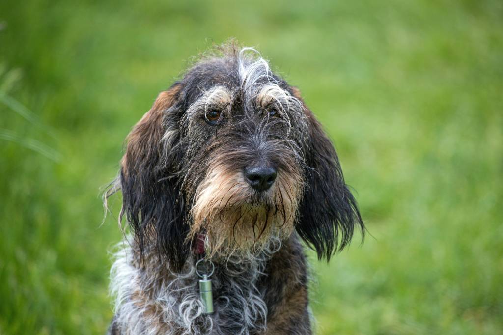 Des chiots Griffon Bleu de Gascogne jouant entre eux et avec leur mère