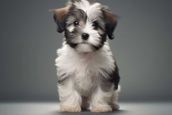 Un Havashu regardant vers la caméra et étant assis sur un fond gris