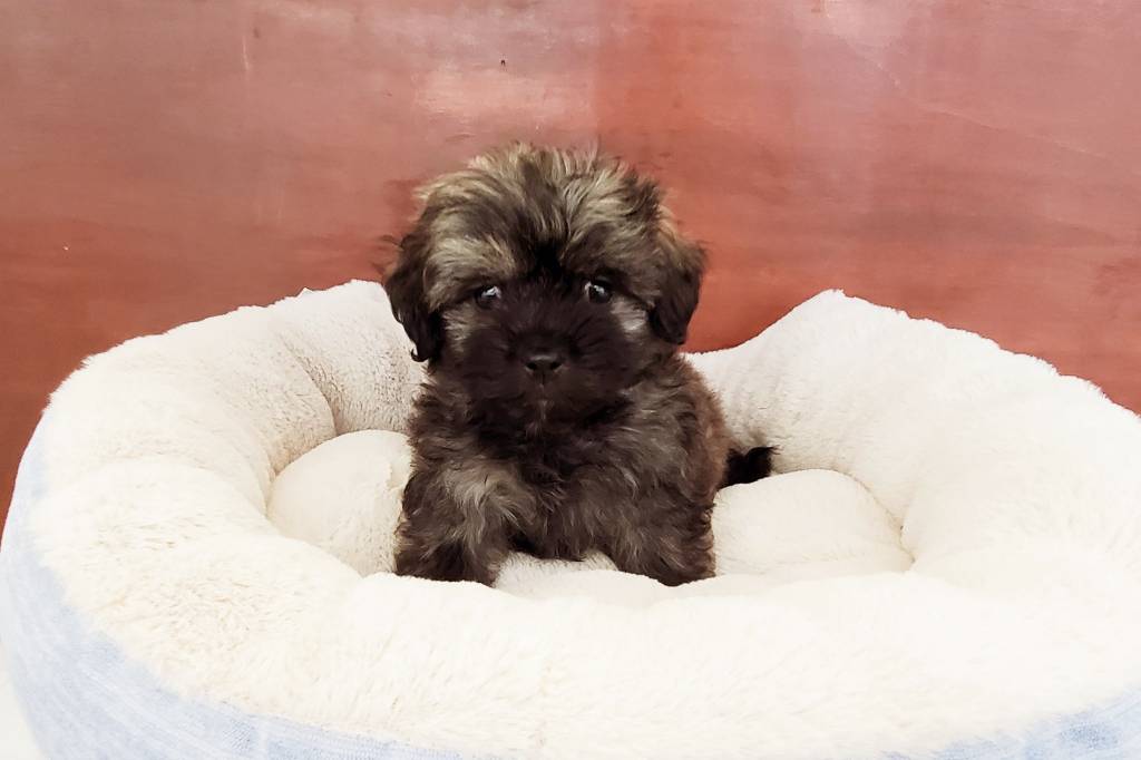 Un Havashu faisant face à la caméra et assis dans un panier doux