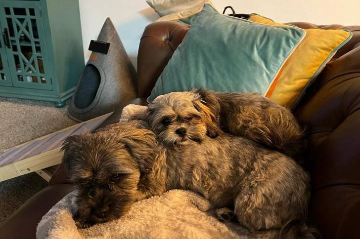 Deux Havashus se reposant confortablement l’un contre l’autre sur un canapé