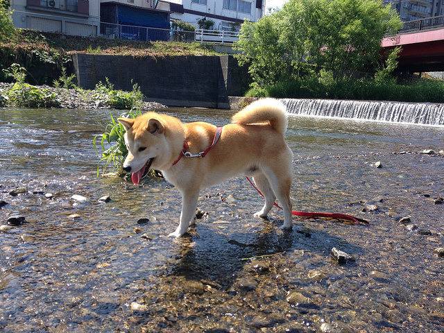 Partie de jeux entre un Hokkaido Ken, un Shiba Inu et un Shikoku