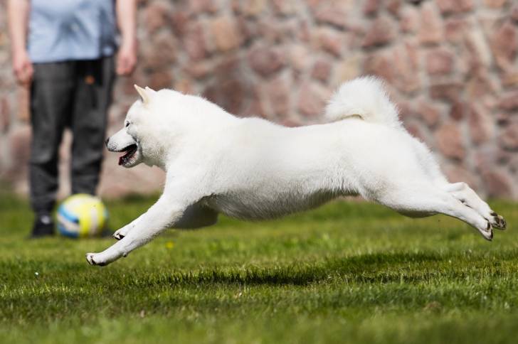 Partie de jeux entre un Hokkaido Ken, un Shiba Inu et un Shikoku
