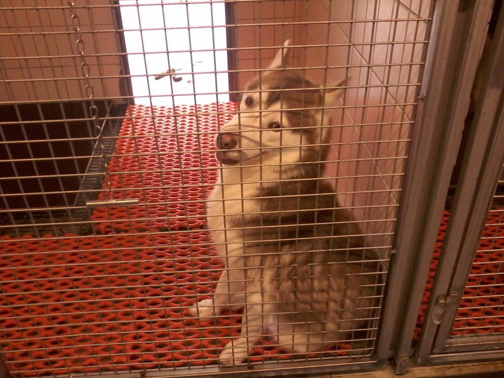 Mise bas d'une chienne Husky donnant naissance à 7 chiots