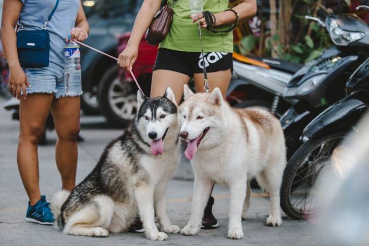Mise bas d'une chienne Husky donnant naissance à 7 chiots