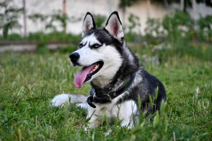 Mise bas d'une chienne Husky donnant naissance à 7 chiots
