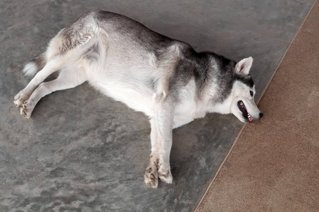Mise bas d'une chienne Husky donnant naissance à 7 chiots
