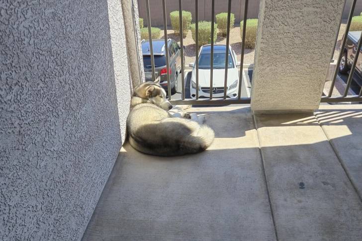 Husky Sibérien allongé et semblant dormir