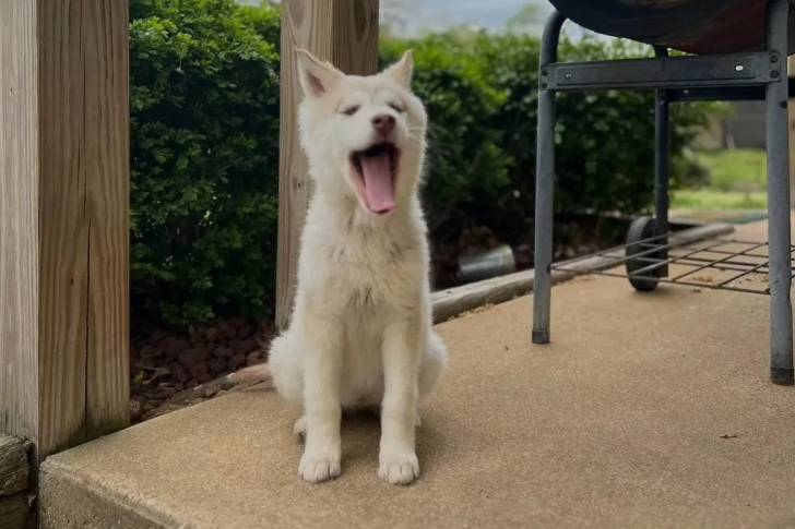 Un Husky Sibérien assis et ouvrant la gueule