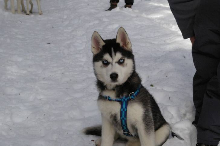 Mise bas d'une chienne Husky donnant naissance à 7 chiots