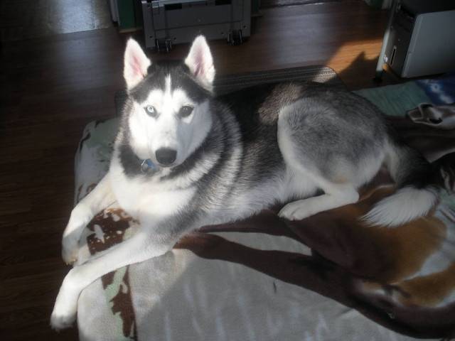 Mise bas d'une chienne Husky donnant naissance à 7 chiots