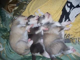 Mise bas d'une chienne Husky donnant naissance à 7 chiots