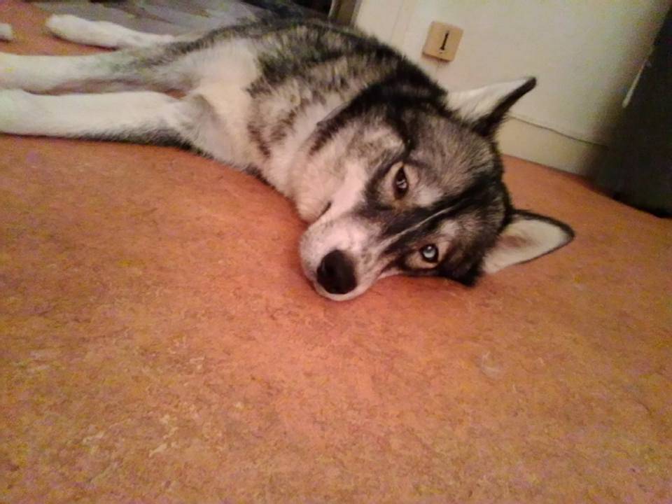 Mise bas d'une chienne Husky donnant naissance à 7 chiots