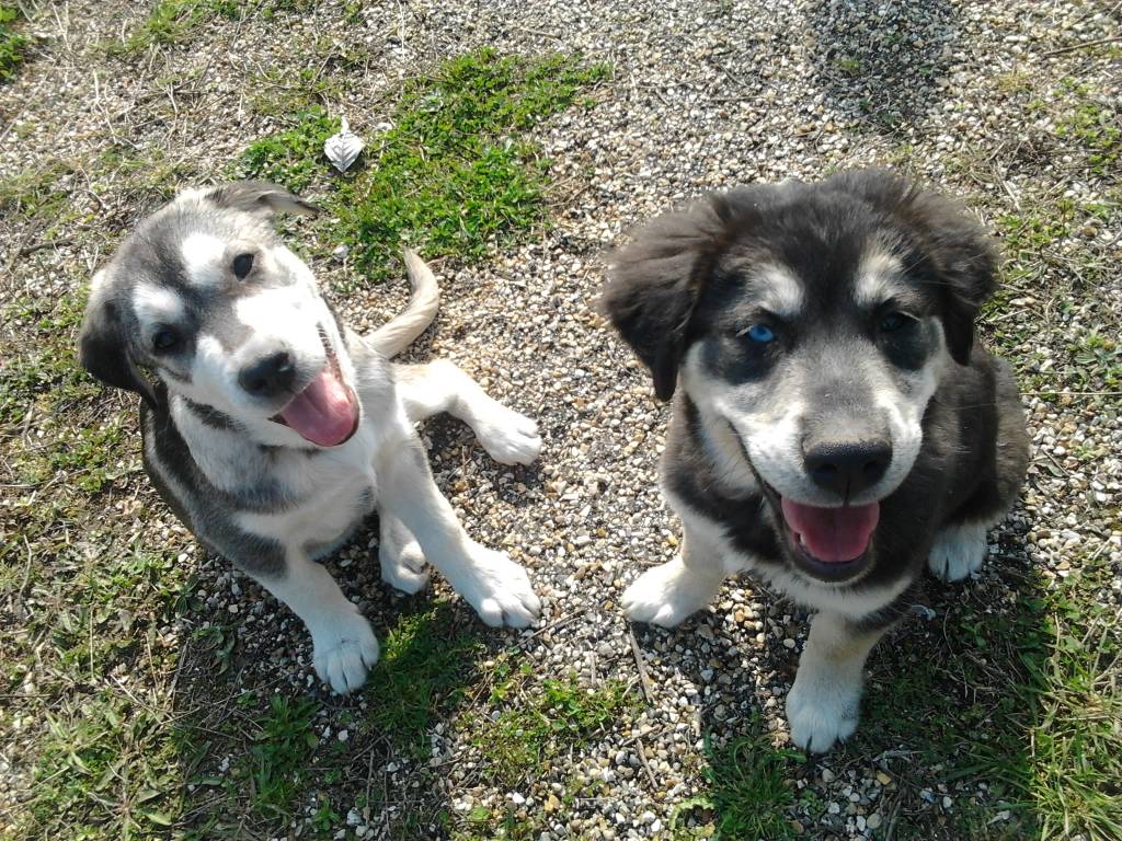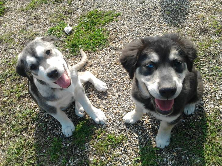 2 labradors croisé husky Marleye (noire et blanche) et N'ko