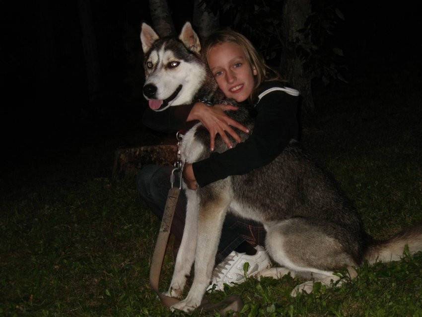 Mise bas d'une chienne Husky donnant naissance à 7 chiots