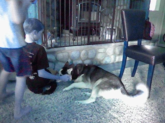 Mise bas d'une chienne Husky donnant naissance à 7 chiots