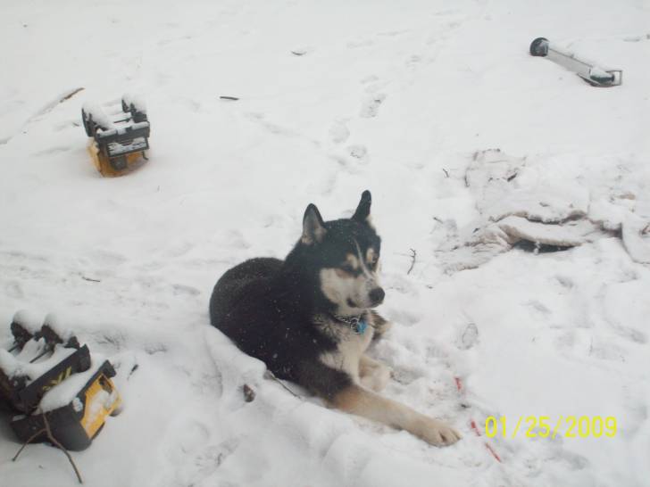 Mise bas d'une chienne Husky donnant naissance à 7 chiots