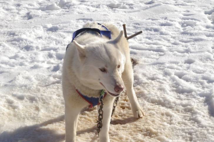 Mise bas d'une chienne Husky donnant naissance à 7 chiots
