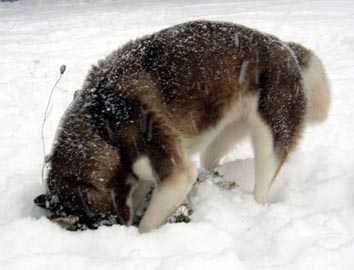 j'ai perdue mon os et je ne le trouve plus dans toute cette neige,il faudrat que j'attende qu'elle fonde.