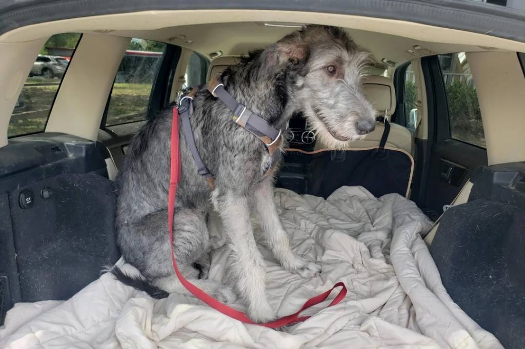 Un Irish Wolfhound plus grand que son maître