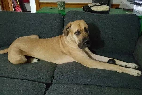 Un Italian Daniff allongé sur un canapé