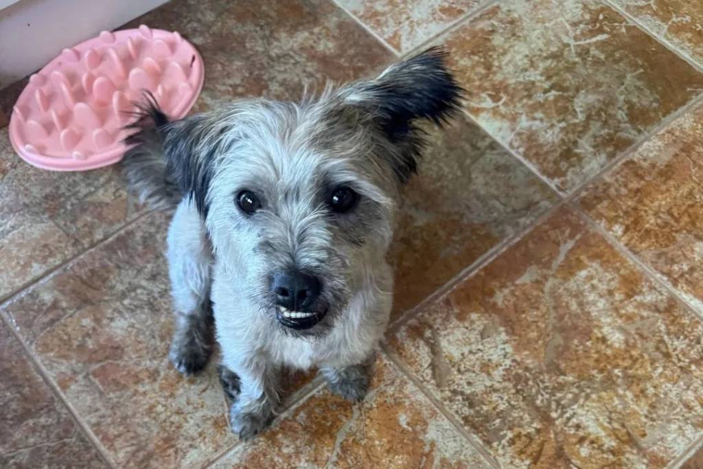 Un Jacairn sur un sol carrelé et regardant vers la caméra