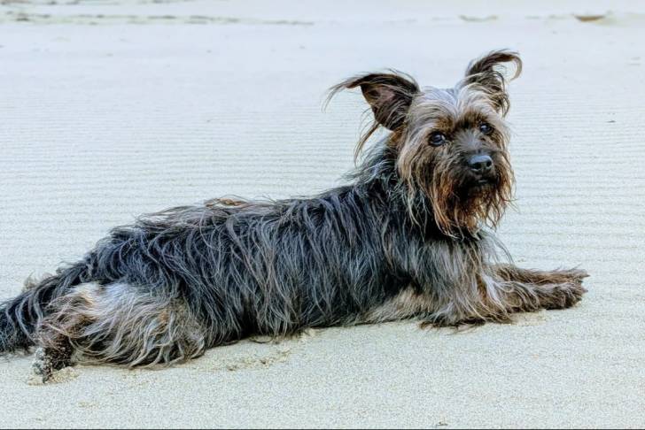 Un Jacairn allongé sur une surface sableuse et regardant vers la caméra