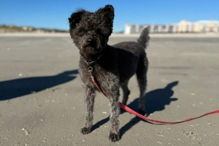 Un Jacairn sur une surface sableuse et qui est tenu en laisse
