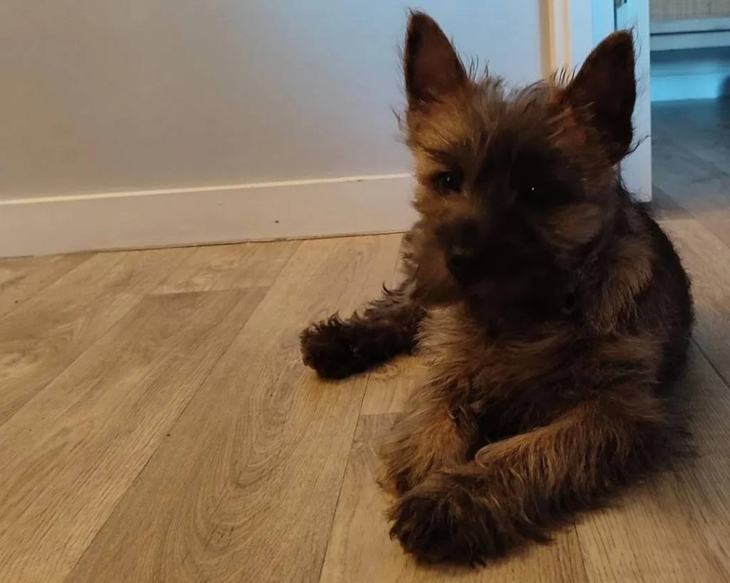 Un Jacairn allongé sur un plancher et regardant vers la caméra