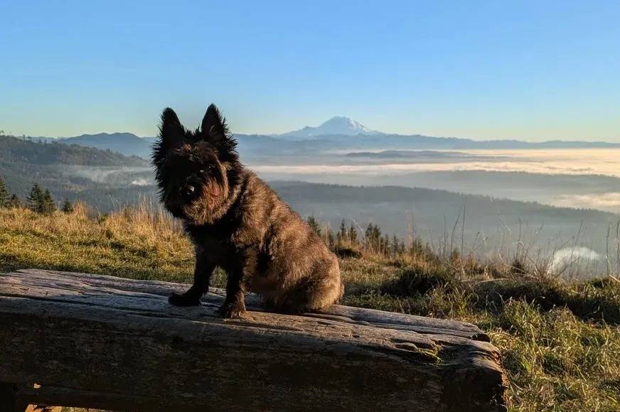 Un Jacairn assis sur un tronc d'arbre et regardant vers la caméra
