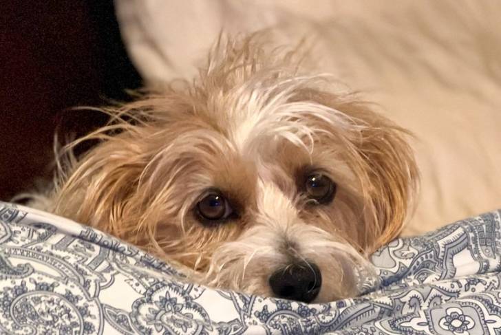 Photo du visage d'un Jack-Tzu couché sur une couverture