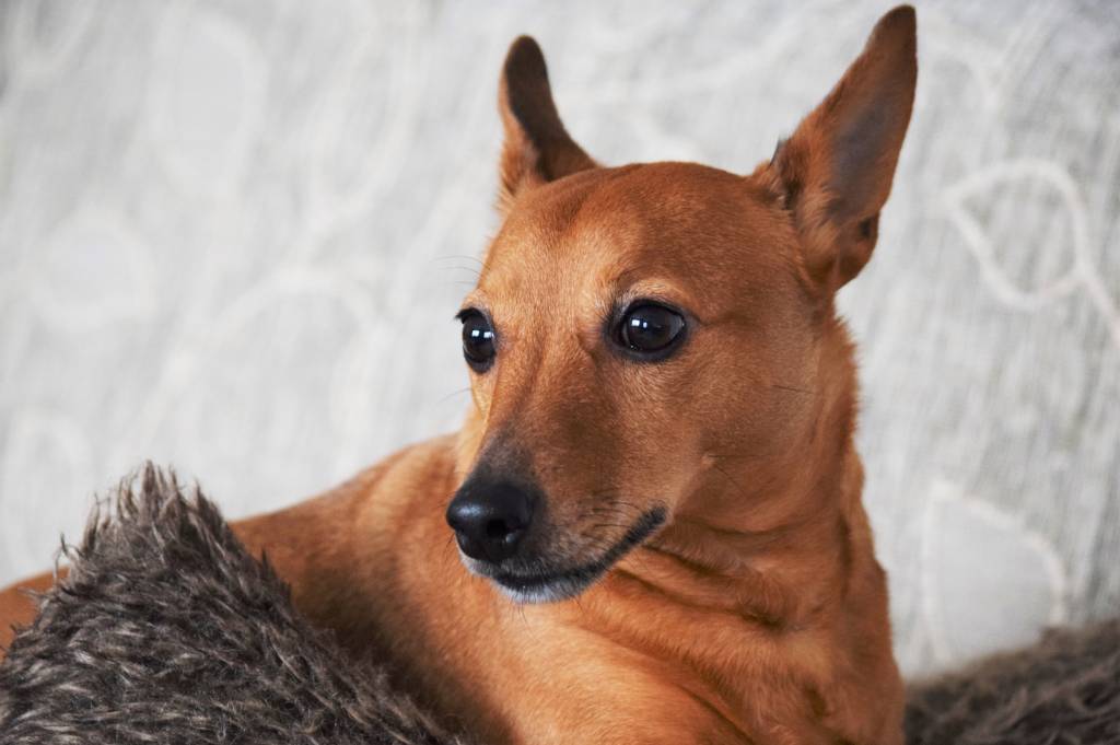 Un gros plan d'un Jackshund au pelage marron, allongé sur une couverture