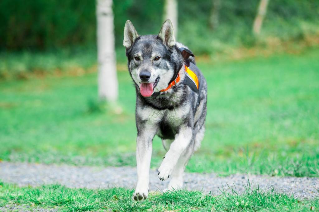 Un Chien d'Élan Suédois réagit à des sons de guitare