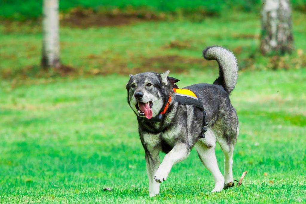 Un Chien d'Élan Suédois réagit à des sons de guitare