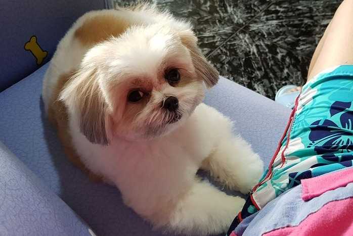 Photo d'une femme assise sur un canapé avec un Jatzu assis à ses côtés