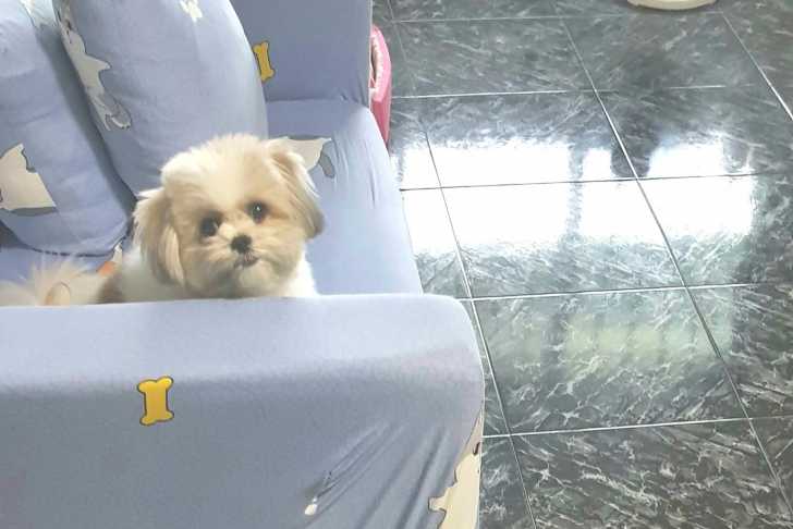 Photo prise de haut d'un Jatzu assis sur un canapé