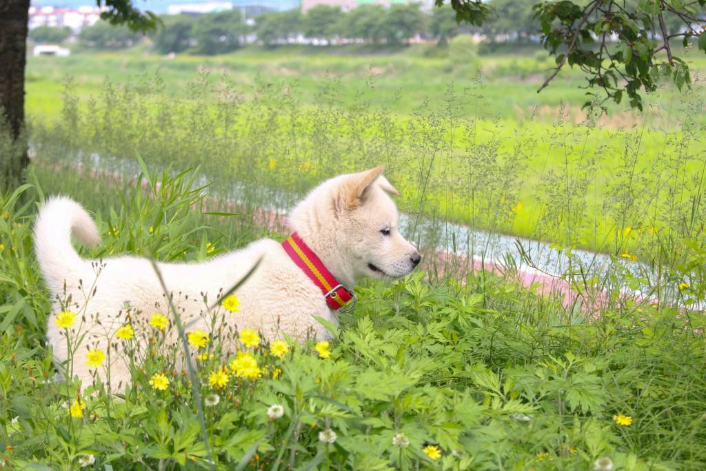 Sacré trio : un Jindo Coréen, un Shiba Inu et un Shikoku Ken