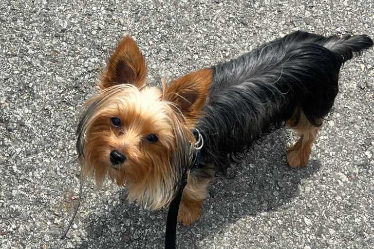 Des petits Jorkie font leurs premiers pas dans le jardin