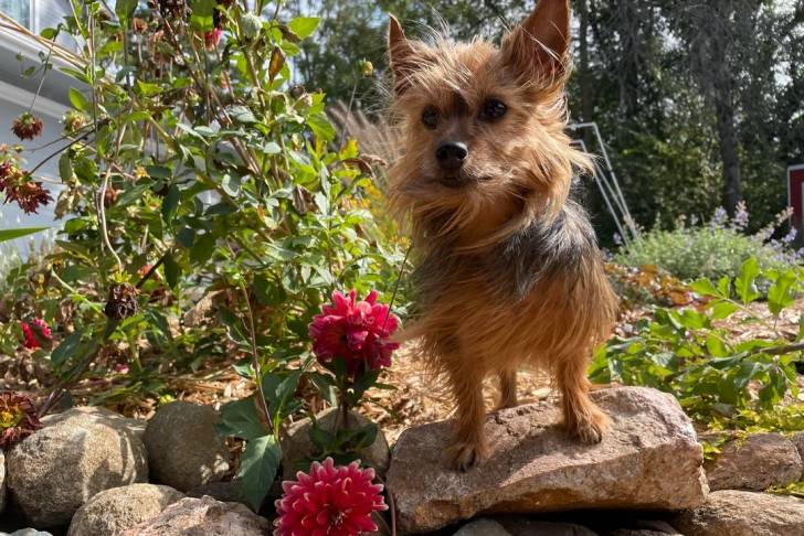 Un Jorkie sur une pierre