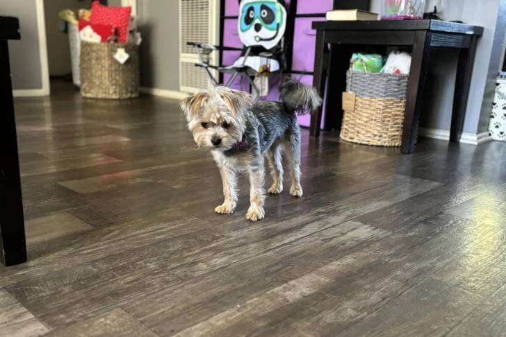 Des petits Jorkie font leurs premiers pas dans le jardin