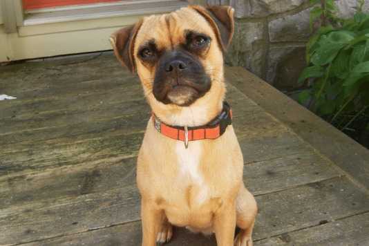 Odie, un chien Jug secouru et maintenant plein de vie