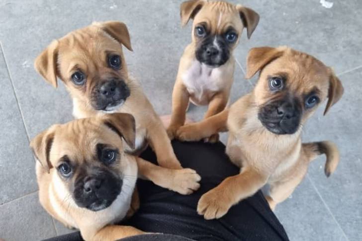 Photo prise de haut de quatre Jugs sur les genoux d’une personne