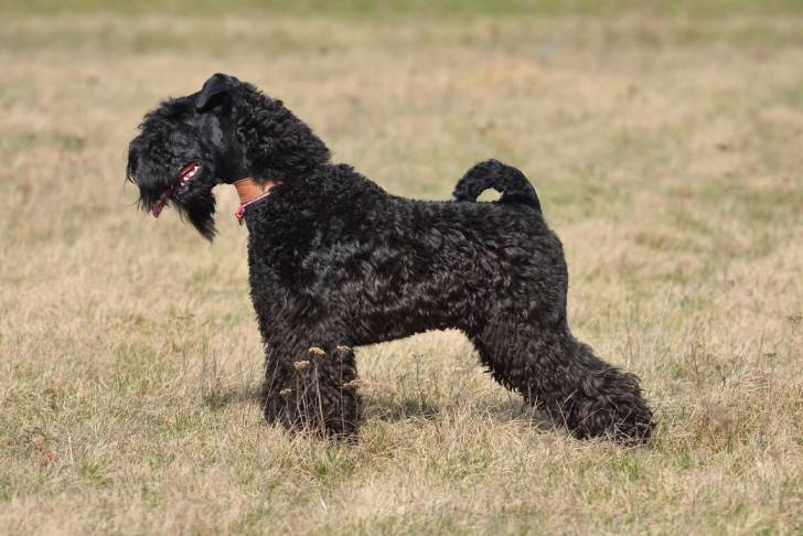 Un Kerry Blue Terrier noir dans un champ