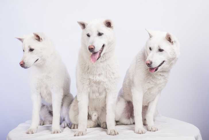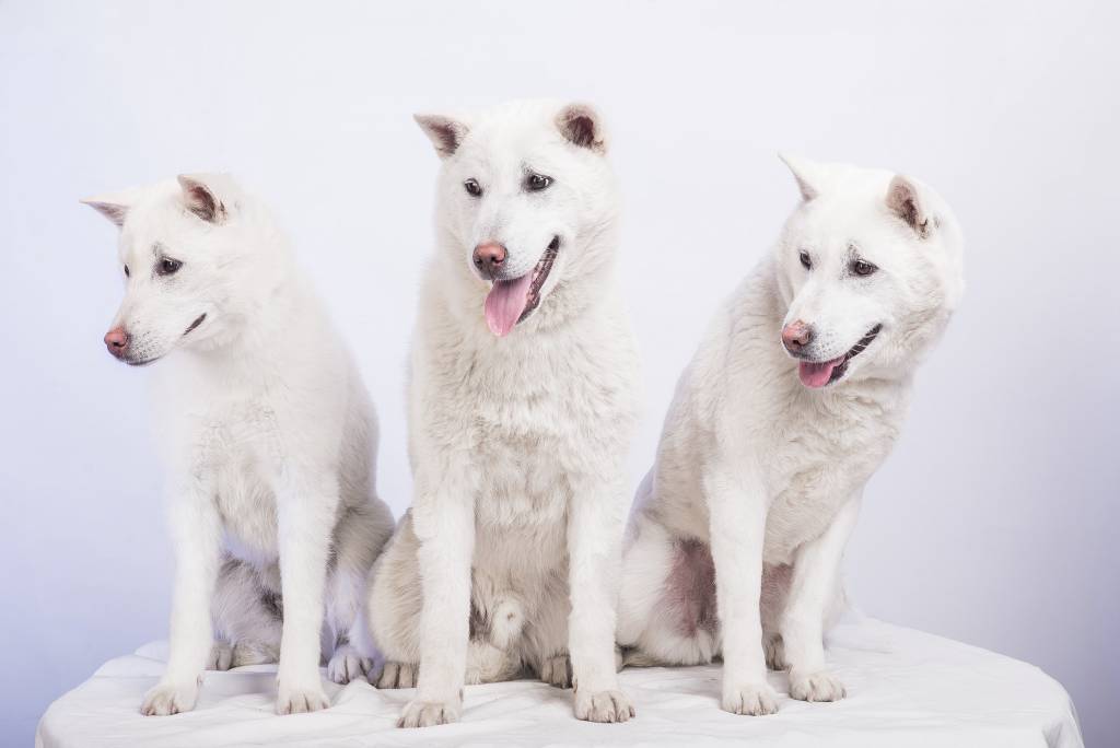 Un chiot Kishu Ken de 7 mois en train de renifler le sol