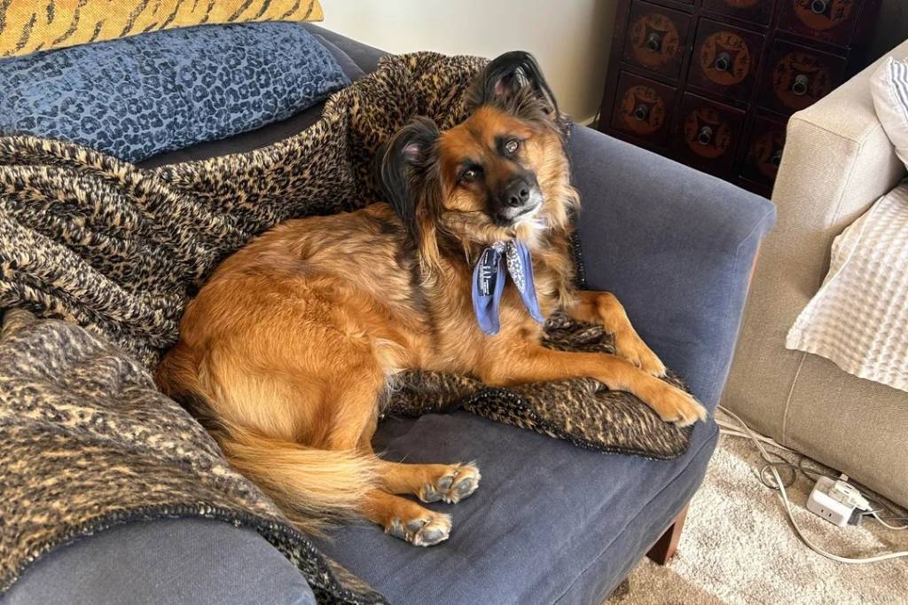 Un Kokoni allongé dans un fauteuil et portant un foulard autour du cou