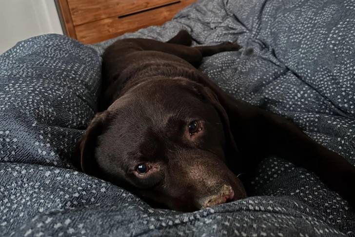 Un Labernois allongé sur une couverture