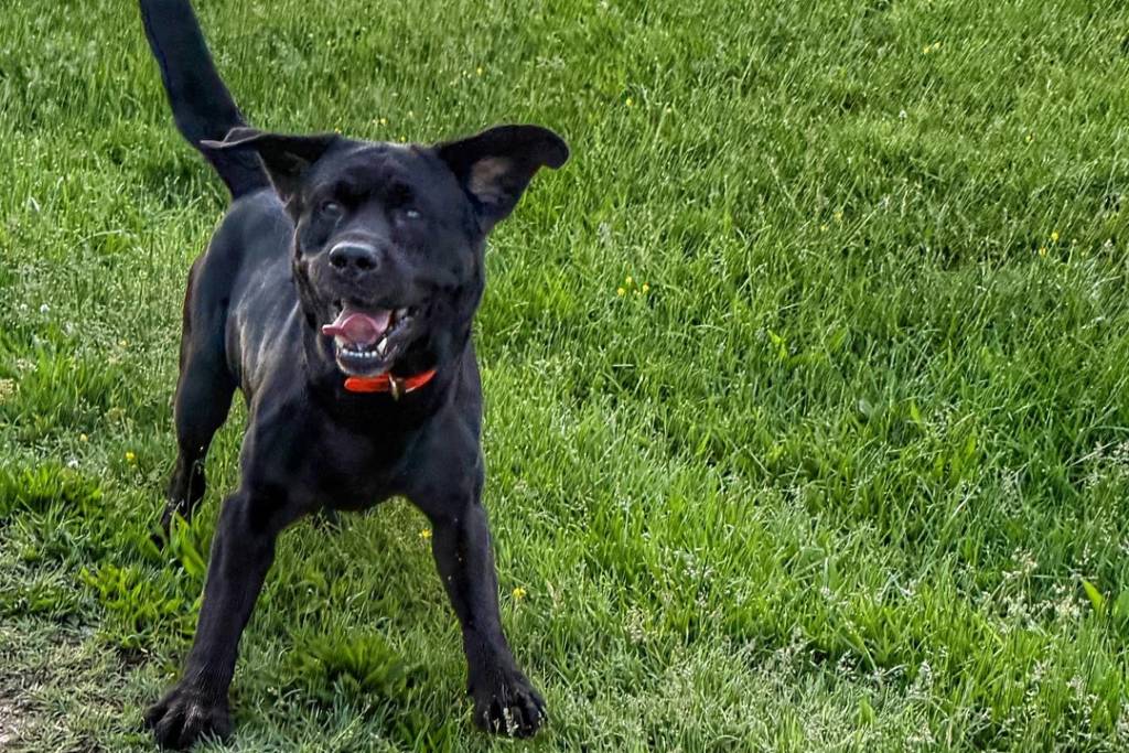 Un Labernois sur un terrain herbeux ayant la gueule ouverte